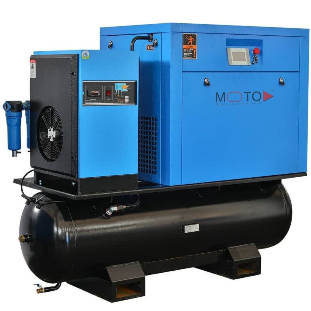Our Advantage All-in-one Compressor With Air Dryer & 300L Tank. Efficiently condenses the air to remove airborne moisture, dirt, and oil. One random precision filter for free. It widely used for production, pharmaceutical, textile, auto repair, aviation, metallurgical and other industrial fields. Screw type air compressor is easier to maintain They are good energy conservers They consume less oil than other oil-flooded air compressors Product Description German Technical Airend 1. The design idea of “large rotor, large bearing, low speed” is adopted to reduce noise and vibration and increase the life and stability of the host. 2. The tooth surface is processed by the German KAPP rotor grinder to create a high-precision rotor, which is the first guarantee of high efficiency and stability of the air end. 3. Adopt a new type of 5: 6 asymmetric rotor tooth shape, high-precision three-coordinate measuring machine for comprehensive measurement, increase the air capacity by 5% -10% 4. All imported quality bearings are used. High Energy Efficiency Motor 1. Large starting torque 2. Specialized motor for air compressor, imported quality bearings; 3. IE3 high energy efficiency motor, reduce your using cost 4. Motor design is designed according to 1.2 coefficient; 5. Protection grade IP54, insulation grade F. 6. Permanent lubrication of the front and rear bearings of the motor without adding grease Oil & Gas Separator With bigger oli and gas separator and oil separator element, improving the initial separation efficiency , ,anking the oil content less than equal to 3ppm. Contactor Manufactured by Schneider Electric, our switchgear UL/CSA compliant. Schneider contactors are used for Y/Delta soft start. Schneider variable speed drive option gives our customers up to 7X starting amp savings and up to 40% savings while the unit is in operation. With a global presence in over 100 countries, Schneider Electric is an industry leader in Power Management – Medium Voltage, Low Voltage and Secure Power and in Automation Systems, providing integrated e efficiency solutions, that combine energy, automation and software to deliver comprehensive energy-saving solutions.